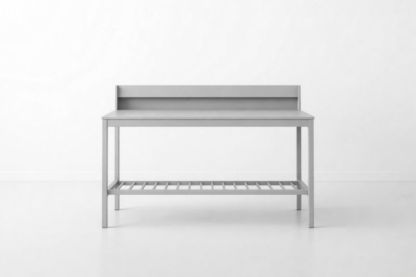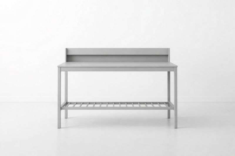 Table en acier avec un espace de travail fonctionnel. Utilisable en cuisine ou atelier.